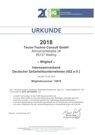 Ebenso zeichnet uns aus, dass wir ein Mitglied bei dem Interessenverband Deutscher Zeitarbeitsunternehmen e.V., kurz iGZ, sind.